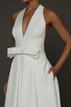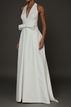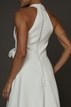 Vestido de Noiva da marca Jesus Peiro. Confeccionado em crepe sem bordados, decote V, decote traseiro fechado, sem manga, saia godê e sem cauda. Peça seminova em excelente estado de conservação. Apresenta sinais muito sutis de uso.